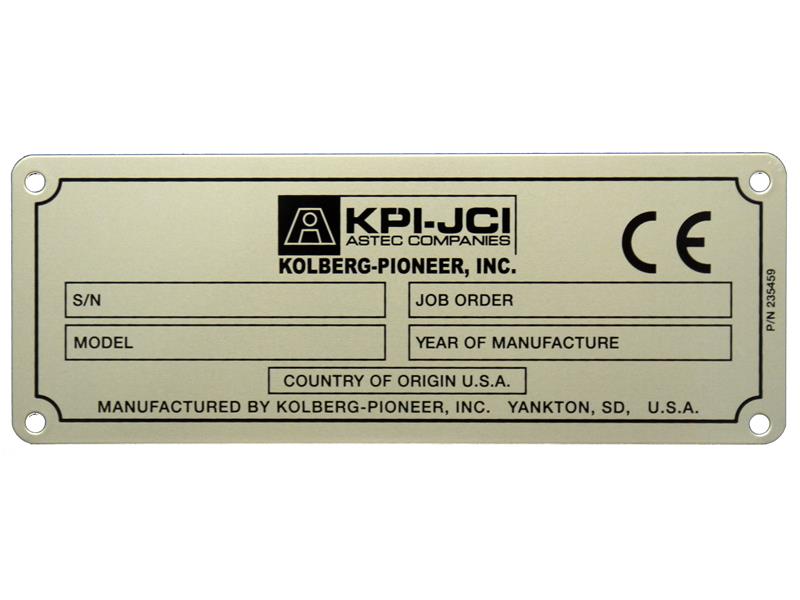 U.S. Nameplate assists with the creation of unique, customized metal serial tags. Although sequential numbering is common information on a metal serial tag, other information can be added to create a unique tag. Information including manufacture date, model, and year of the product helps consumers better track their machinery or equipment. Additionally, other information specific to individual products can be added to the metal serial tag to help in the instance of inventory inspections or audits.